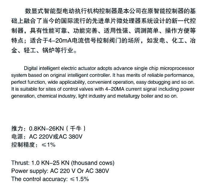 382L直行程智能数显式电动执行机构详细介绍